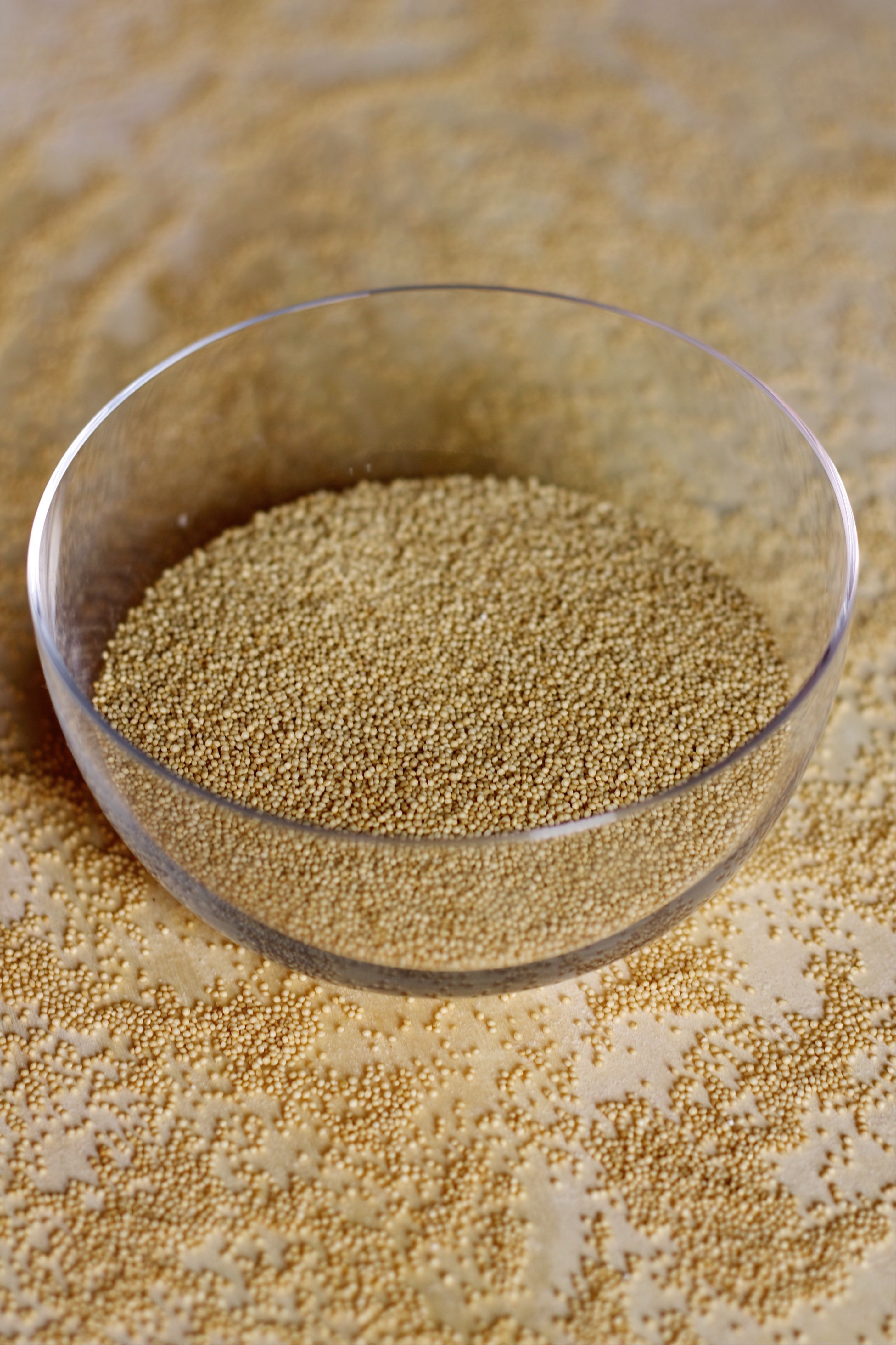 Va cotto nel doppio (o anche il triplo) di acqua rispetto al suo volume. Quando è pronto diventa un po’ gelatinoso…io preferisco quindi mischiarlo con altri cereali, quinoa in particolare. Consiglio sempre un abbondante risciacquo dentro un colino a maglie strette strette. Se volete potete fare una leggera tostatura (con soffritto o meno) e poi coprirlo d’acqua. In circa 20 minuti è pronto. Penso come base per le polpette sia insuperabile (gelatinoso e colloso tiene bene l’impasto senza dover aggiungere uova). Pare, e dico pare, perché fino a ora non ho mai sperimentato (ma magari oggi lo faccio), che se si versano i semi (pochi alla volta) in una padella ben calda e la si chiude con un coperchio, dopo qualche secondo si trasformano in “pop-corn”. Se funziona ve lo farò sapere!!!