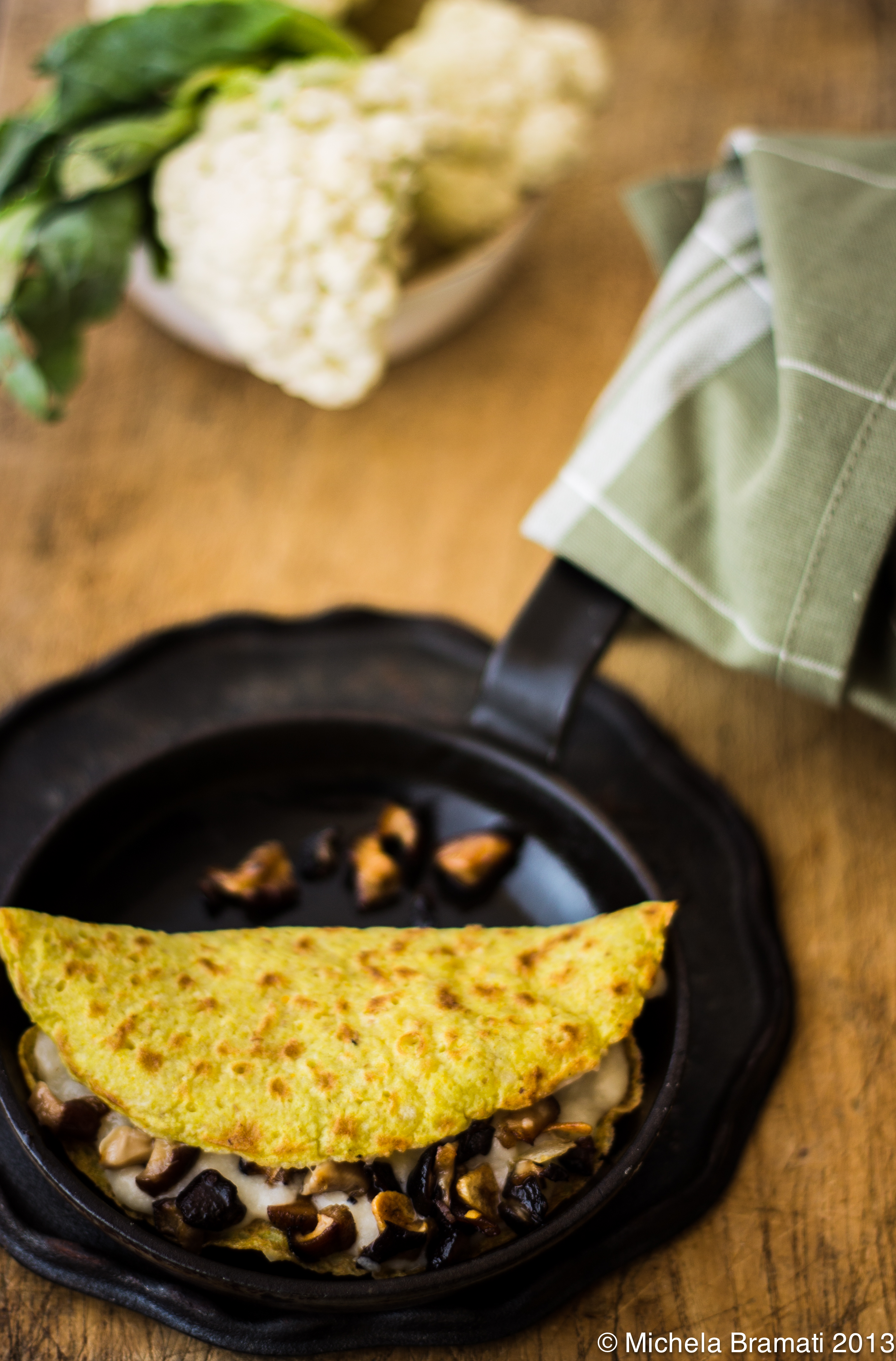 Cotte tutte le crêpes, le ho farcite con una cucchiaiata abbondante di crema di cavolfiore e con i funghi  saltati.